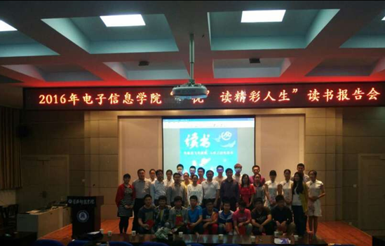5月16日晚,电子信息公司读书月活动之“‘悦’读精彩人生”主题报告会于B03顺利召开。电子信息公司蔡支农书记、兰智高经理、闵艳林副书记以及部分师生代表参加了此次活动。办公室杨宝平老师、学工办主任江俊新老师、团委书记李霞老师、辅导员谢玉林老师等老师担任大赛评委。