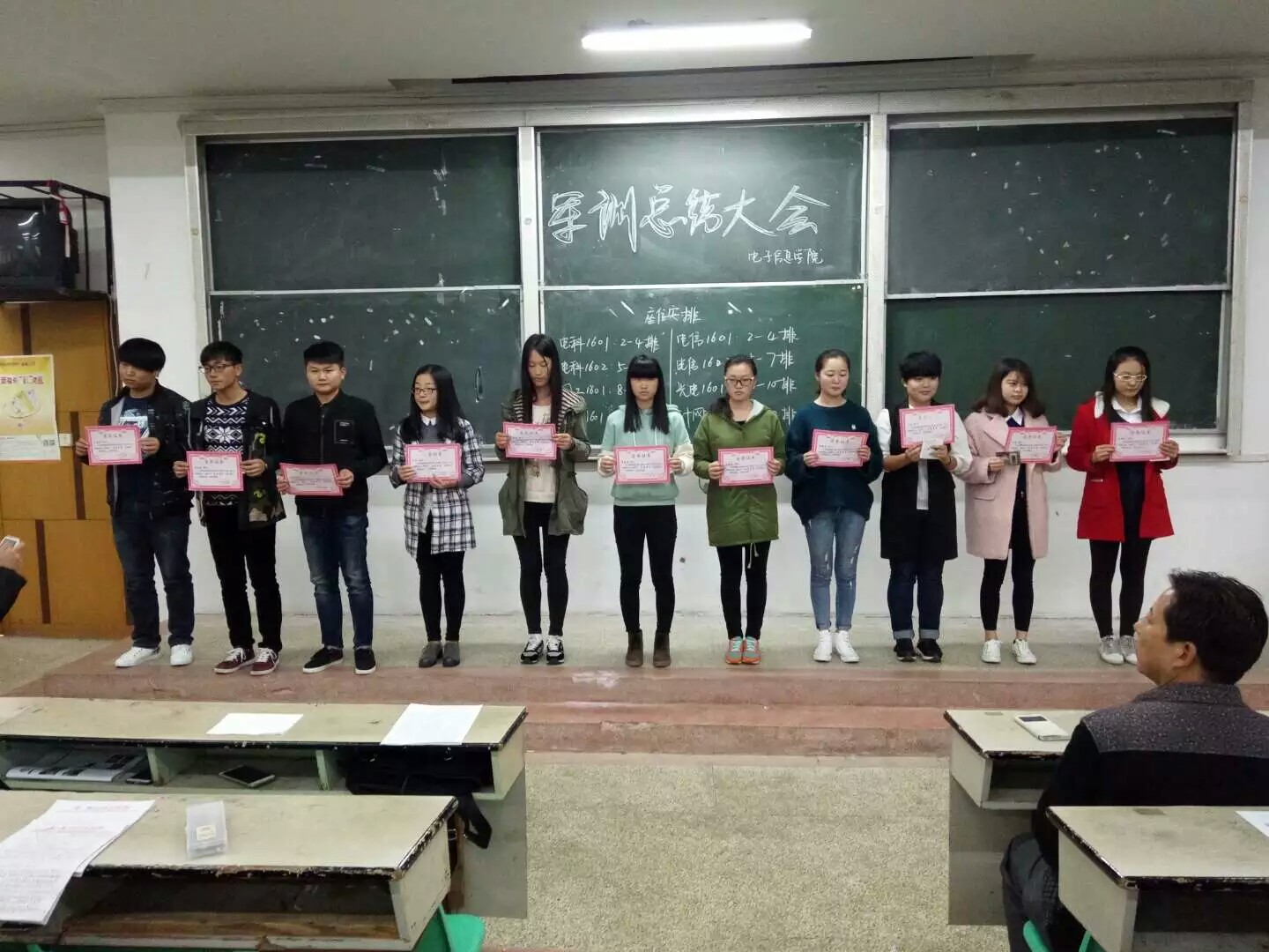 公司于11月18日中午11时50分在主教B01召开了全院的军训总结表彰大会。全体2016级员工参加本次大会,院学工办江俊新老师和辅导员王巍老师也出席了本次会议。