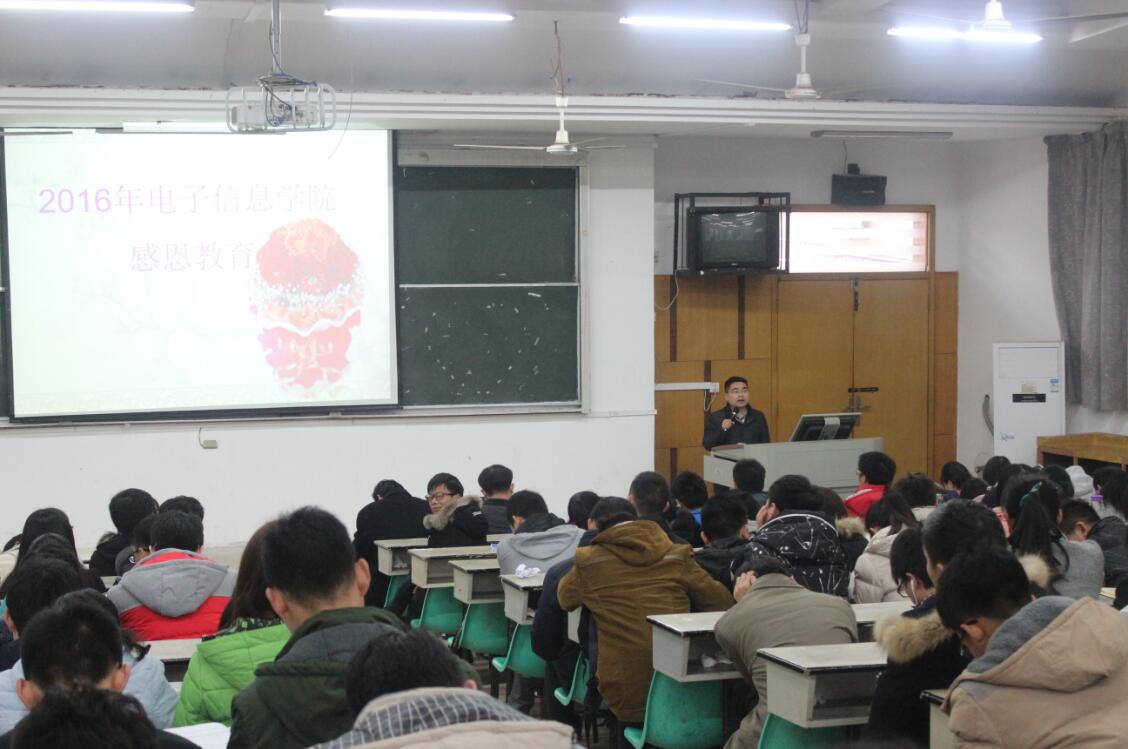2016年12月20日,公司感恩教育主题大会在南区主教b01顺利召开。电子信息公司党总支副书记闵艳林,学工办主任江俊新,辅导员王巍,辅导员严丹,部分员工会干部和全体受助员工参加此次会议。会议由江主任主持召开。