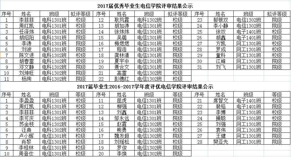 关于电子信息公司2017届优秀毕业生及2016—2017年度三好员工(优秀员工干部)评选结果的公示