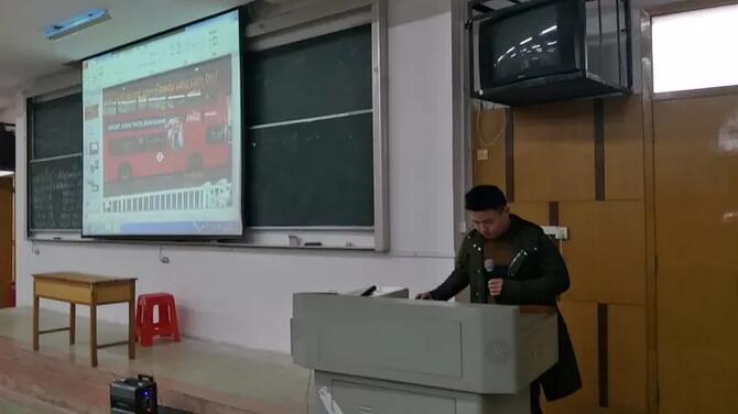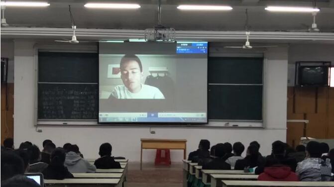 接着,拥有海外学习经验的光电1501班陈睿君同学发言。他讲述了自己在英国学习时的所见所闻,所思所想,然后对同学们提出了以下四点建议:一、认识到英语的重要性;二、对自己未来要有所规划;三、要明白老员工身上所肩负的使命;四、国人要增强自身的自信和幸福感。之后,2017年国家奖学金获得者李伯暾以视频的方式和同学们见面,他结合自身在校学习的经验和员工工作以及现在所面临的就业压力指出:作为新时代的老员工,要有目标,并且要一步一步的去实现,因为只有这样,大学毕业后才有能力和那些名校毕业的人才去竞争。此外,他呼吁作为一名当代老员工应当志存高远,且更要珍惜大学的美好时光。