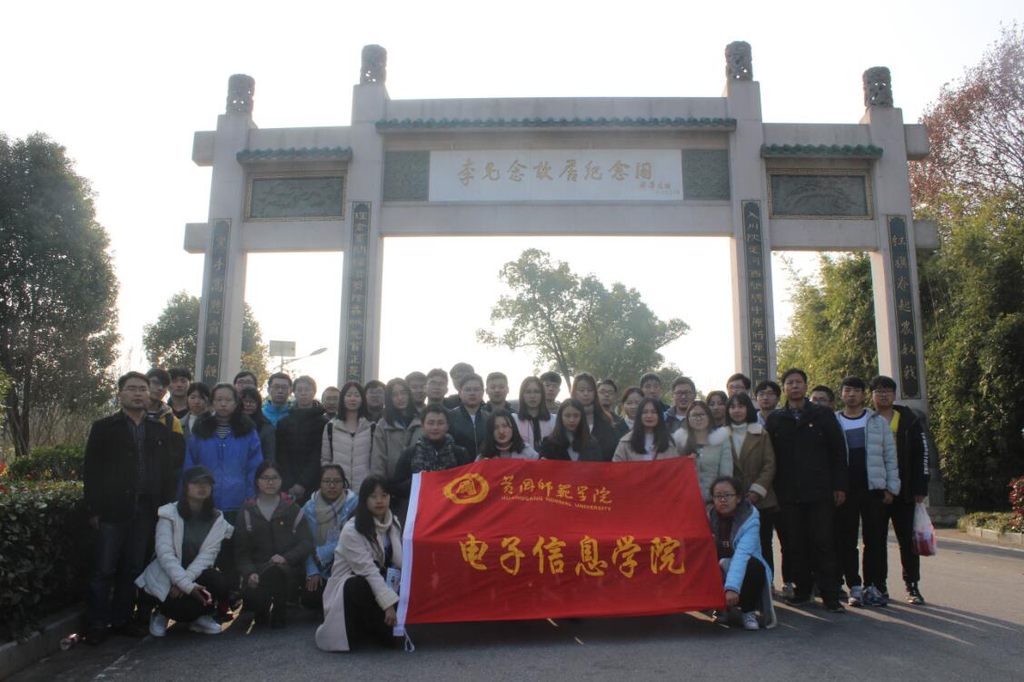 为领悟红色旅游文化,加强爱国主义教育以及为响应国家和共产主义青年团号召组织青年老员工认真学习红色精神,深入了解红色革命景区所承载的革命历史、革命事迹和革命精神,12月2日,电子信息公司党总支副书记闵艳林、学工班主任江俊新、分团委书记王巍以及15、16、17级各班班长、团支书到湖北省黄冈市红安县黄麻起义和鄂豫皖苏区革命烈士陵园参观学习。