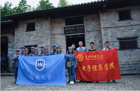 8月13日,团队首先到达的是见证了毛泽东和贺子珍的珍贵革命情谊的象山庵、毛泽东曾居住的八角楼以及保存了大量历史文物图片资料的井冈山会师纪念馆,在此期间,队员们与来自海南大学和成都理工大学的社会实践团队进行了关于井冈山精神的交流,加深了队员们对红色文化的认知。