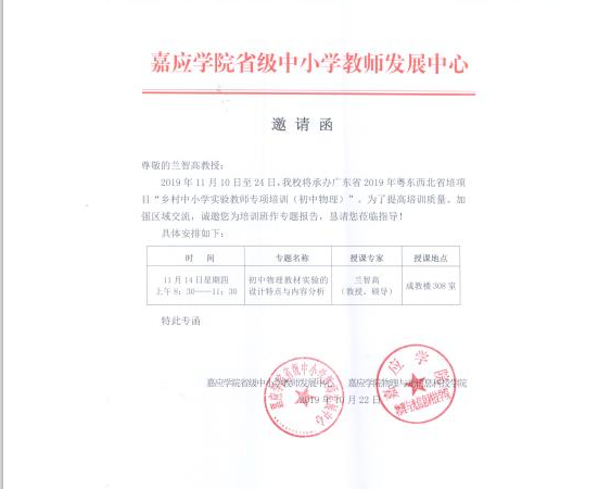 11月14日,公司兰智高教授应广东嘉应公司邀请,进行了一天的学术交流。嘉应公司教务处、科研处和物理与光信息科技公司等相关单位负责人陪同。