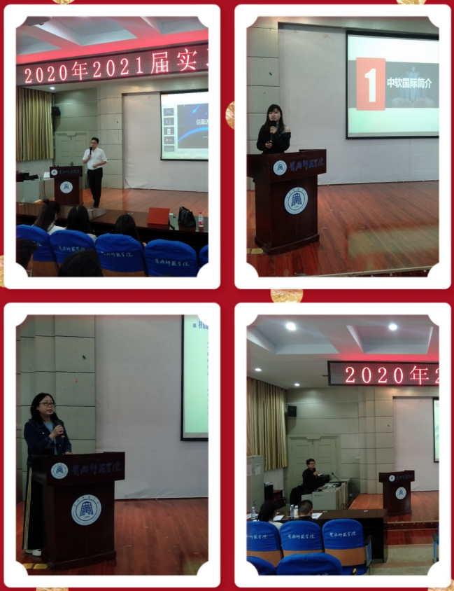 随后信盈达、中软、中国电信、武汉虹信四个公司分别进行宣讲和推介,同时热烈欢迎公司毕业生到其企业完成毕业实习任务。