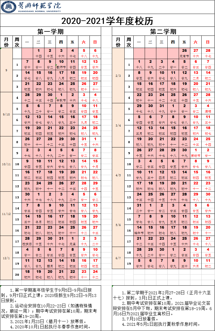 2020-2021-2周历表