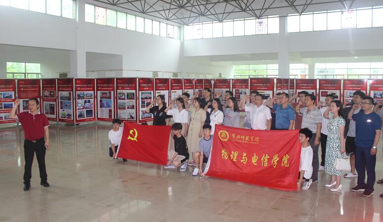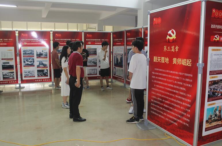 在主题展厅里,公司师生党员首先庄严的重温入党誓词,然后沿着时间线索,阅览了“百年黄师与党同行”主题展“开天辟地,黄师初创”、“改天换地,黄师积淀”、“翻天覆地,黄师崛起”、“惊天动地,黄师奋进”四个篇章。百幅图片将黄师百年来与党同行的发展历程与成就展现得淋漓尽致。