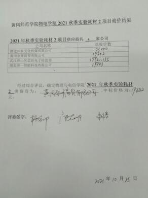 william威廉中文官网william威廉中文官网2021年秋季实验耗材的采购招标工作从2021年10月14日启动,公开面向社会招标,并在公司网上公示,截止到10月23日共收到有效标书4份,于10月25日公司组织人员开标,开标结果为 :黄冈金开商贸有限公司以人民币19682元的价格中标。