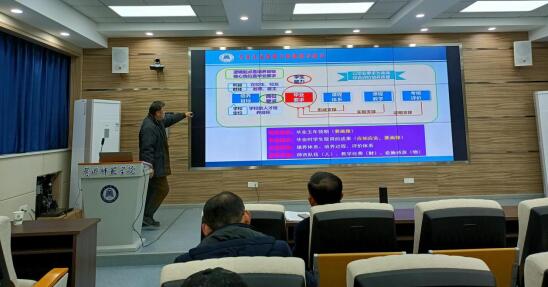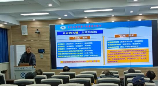项俊教授以专业认证守牢主线和底线、专业认证做好课程与教学、认证工作流程设计与分工三个方面展开,对公司师范专业认证工作进行高屋建瓴的指导,深入浅出的讲解,详尽细致的分析对比,对公司范认证工作起到了指导性作用,并且给出了具体的实施操作步骤。