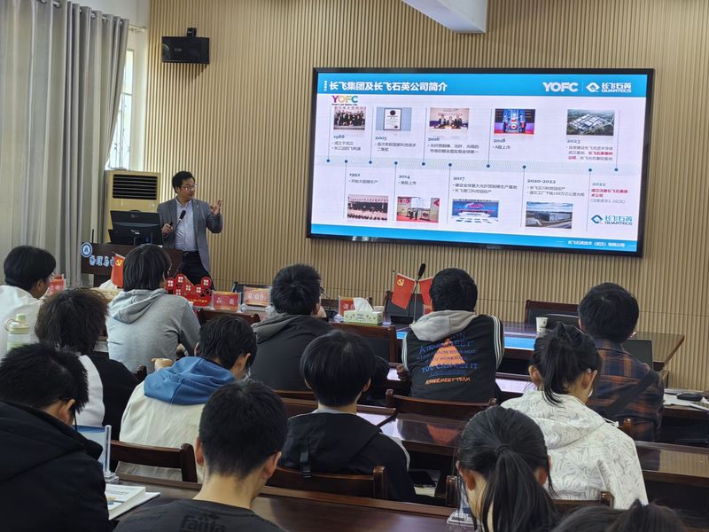 仪式结束后,朱继红教授应邀为公司师生做了题为“创新引领未来:高纯石英材料的突破与展望”的学术报告。报告结束后,朱继红教授就有关光电功能材料前沿技术、光电子信息行业人才培养需求与在场师生进行了交流。