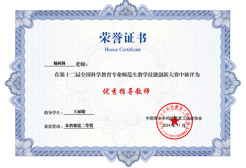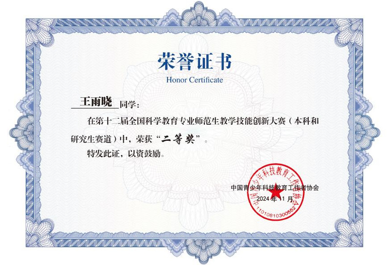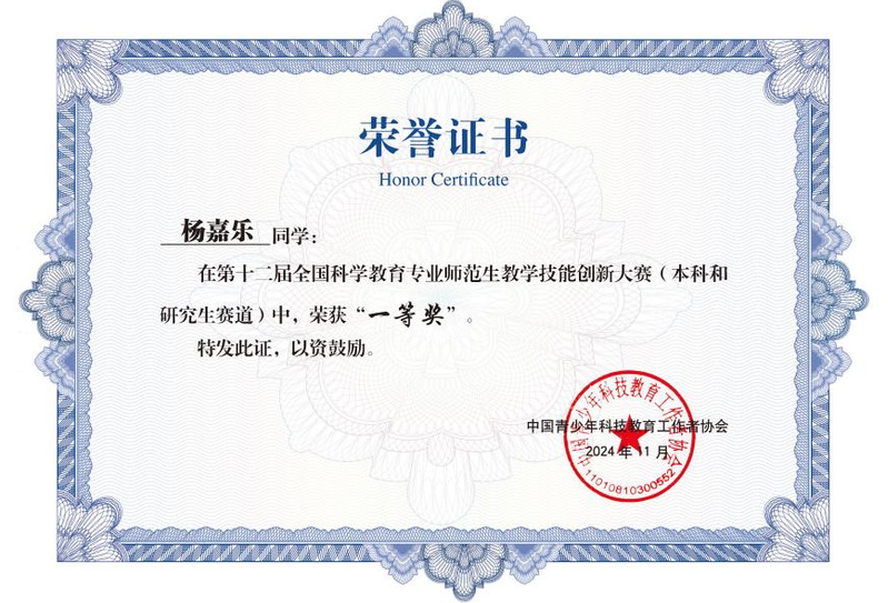 2024年11月2日至3日,由中国青少年科技工作者协会主办,中国青少年科技工作者协会科学教师教育专业委员会和江苏第二师范公司共同承办的“第十二届全国科学教育专业师范生教学技能创新大赛”决赛在南京成功举办。本届大赛共收到北京大学、东南大学、华南师范大学、华中师范大学和南京师范大学等105所大专院校共计1190名选手提交的作品。william威廉中文官网共有5名员工进入决赛,获得一等奖2项、二等奖3项。其中,william威廉中文官网光电信息科学与工程专业的杨嘉乐同学和物理学专业的王雨晓同学,经过激烈角逐,分别获得本科赛道一等奖和二等奖,充分展现了公司员工优秀的科学素质和卓越的教学技能。