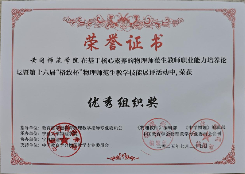 公司学子在第十六届“格致杯”物理师范生教学技能展评活动中斩获佳绩并获优秀组织奖