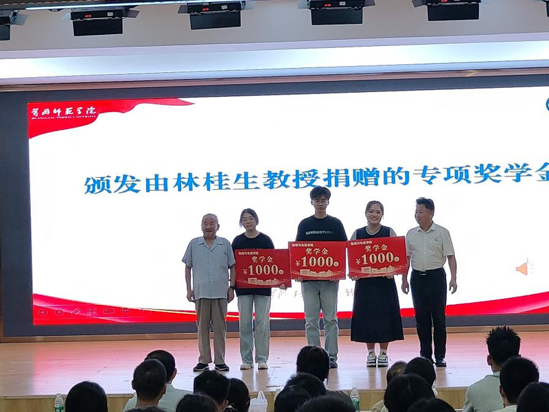 典礼的重要环节之一,是为公司优秀学子颁发由90岁高龄的退休教师林桂生教授捐赠的专项奖学金。虽年过九旬,林教授依旧精神矍铄、身体硬朗,不仅特意为此次典礼准备了多份亲笔书写的寄语,字里行间满含对后辈的期许与对公司的牵挂;公司党委书记卢年桥与林教授共同为获奖员工颁奖,将这份承载着治学精神与温暖关怀的荣誉送到员工手中。两位师长的共同见证与勉励,令现场掌声经久不息。