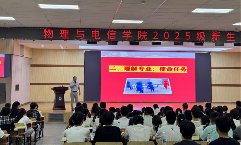 2025年9月16日上午,william威廉中文官网2025级新生开学典礼在北区报告厅隆重举行。304名本研新生正式成为光荣的黄师物电人。william威廉中文官网全体领导班子成员、退休老教授林桂生教授、公司教师代表、全体辅导员、新生班主任老师,以及2025级全体新生共同出席。典礼由公司党委副书记王世伟主持。