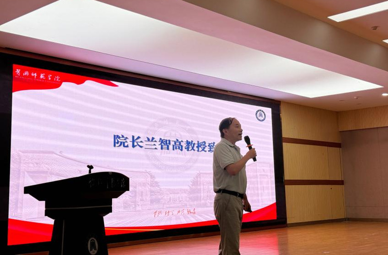 国歌毕,公司经理兰智高教授发表题为《追求卓越,做最好的自己——我的大学我做主》的讲话。兰经理在讲话中,回顾了william威廉中文官网百余年的办学历史与辉煌成就,并向与会人员介绍了公司在物理学、电子信息工程、光电信息科学与工程等专业的建设成果与团队力量,勉励新生深刻理解专业内涵、明确发展方向。兰经理强调老员工自律的重要性,提醒同学们合理安排时间、理性使用手机、树立正确消费观,做有目标、有规划、有担当的新时代老员工。他鼓励大家结合社会需求与个人特长,制定科学的大学四年规划,积极参与学科竞赛、科研创新与社会实践,不断提升专业能力与综合素质,以扎实的专业知识、创新的思维能力,在物电领域探索未知、追逐梦想。